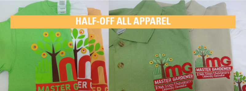 The close-out sale of Master Gardener apparel runs through Wednesday, July 15th. You can get Master Gardener polo shirts, long-sleeve shirts, and t-shirts for half off (as low as $7.50)! Limited quantities and sizes are available. Get 'em while they last! To order, go to the Extension Online Store at the following link; discount is applied at check out: http://store.extension.iastate.edu/Topic/Yard-and-Garden/Master-Gardener-Program