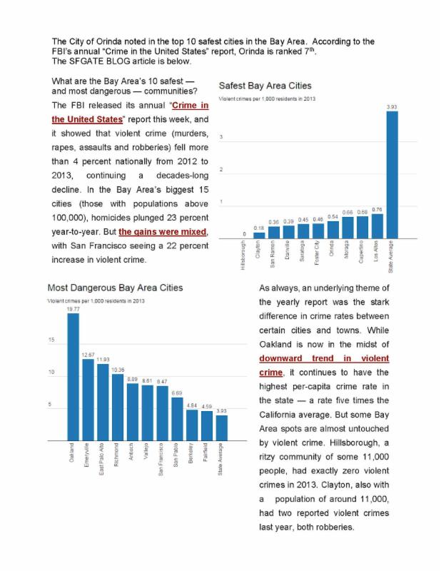 Orinda noted in the top 10 Safest Cities in the Bay Area, to read the article, click here!