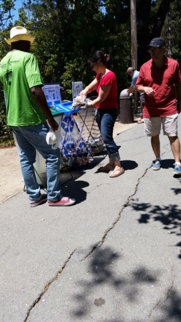 In accordance with the City of Orinda's belief in the importance of waste diversion, our goal is to provide residents with the necessary facilities to enable recycling in our community and around our parks. Though there have always been recycling facilities available during the 4th of July parade, this was the first year that the City worked with Republic Services to track waste. Republic Services contracts with Futures Explored, Inc., a non-profit organization that assists adults with developmental disabilities to cultivate life skills and work-related training. Together these organizations work to provide station monitors at waste stations during special events.