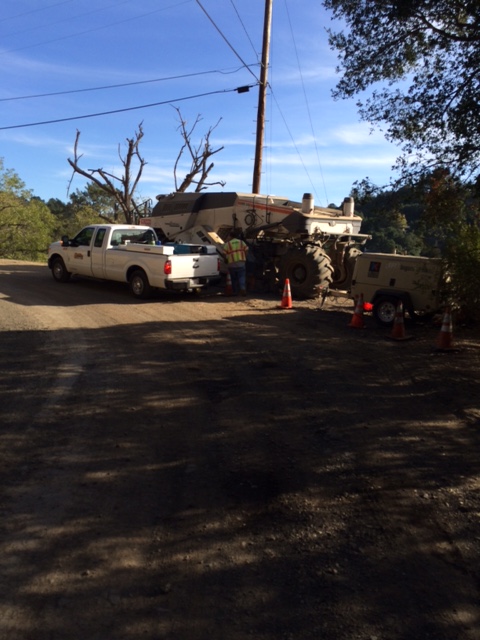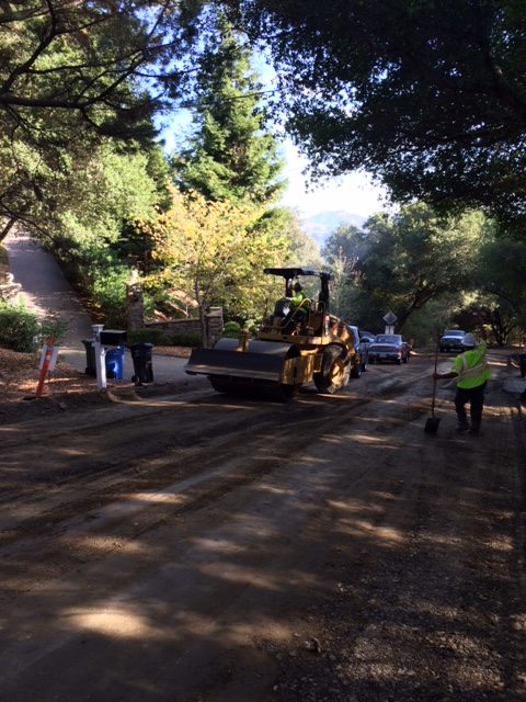 This week Bay Cities Paving & Grading started pulverizing and preparing base along Charles Hill Road, Miner Road and Kite Hill Road. Next week, these roads will be mixed with cement additive before the final asphalt is placed on top. During that time, the roadway surface will be gravel, then a compacted cement treated surface, and finally a new black asphalt pavement. The contractor has also built ADA curb ramps and set up monument re-establishment at other locations.