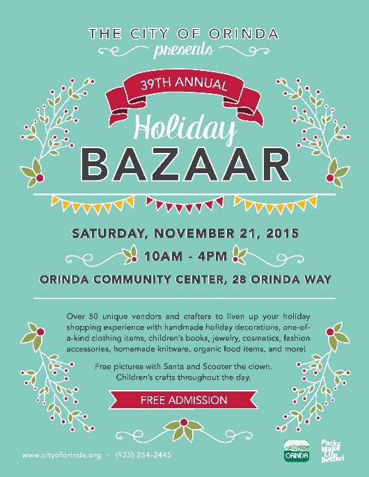 For 38 years community members have been coming to the Orinda Community Center to shop for one-of-a-kind holiday gifts. This year individuals will have the opportunity to browse and purchase items from over 50 vendors at the 39th Annual Holiday Bazaar.