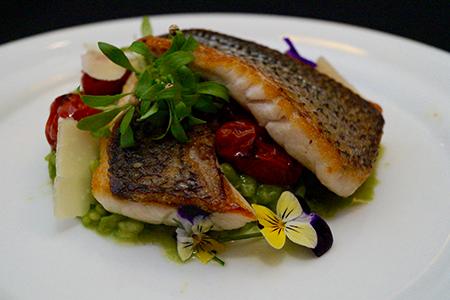 Striped Bass with Coriander Risotto and Roasted Tomatoes