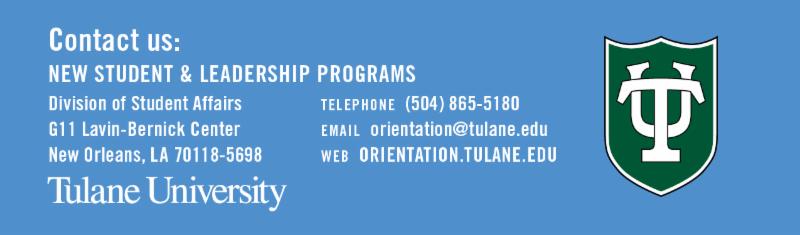 As always, please reach out to us should you have any questions, comments, or concerns. We're available by phone at (504) 865-5180 or email at orientation@tulane.edu.