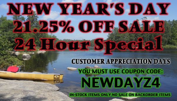 Hello from the End of the Road, Ely, Minnesota. For the next 24 Hours we're increasing our Customer Appreciation Sale from 20 Percent to 21.25%. You, your friends and family, as many folks as you want to tell, can save 21.25% on all in-stock items from 10 am New Year's Day to 10 am Thursday, January 2nd.