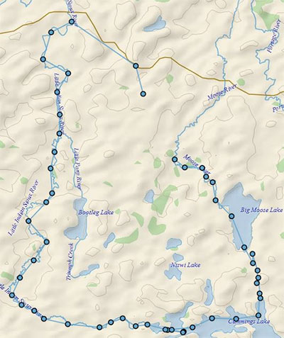 The long portage from Big Moose to Cummings was in good condition. Portions of the portage were wet, but there were no issues. It is a long walk, but a beautiful portage. Lots of moose sign on the portage.