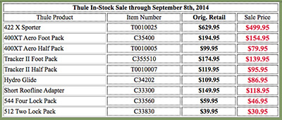 THULE SALE on in-stock Items through September 8th