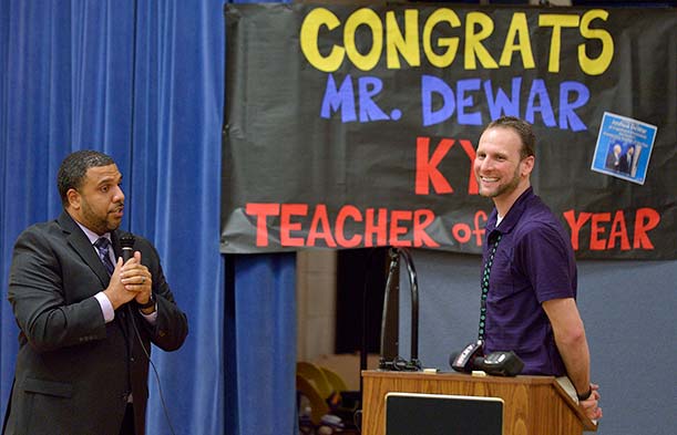 Joshua DeWar, a second-grade teacher at Engelhard Elementary, has been selected as the 2016 Elementary School Teacher of the Year in the competition sponsored by the Kentucky Department of Education (KDE) and Ashland Inc.