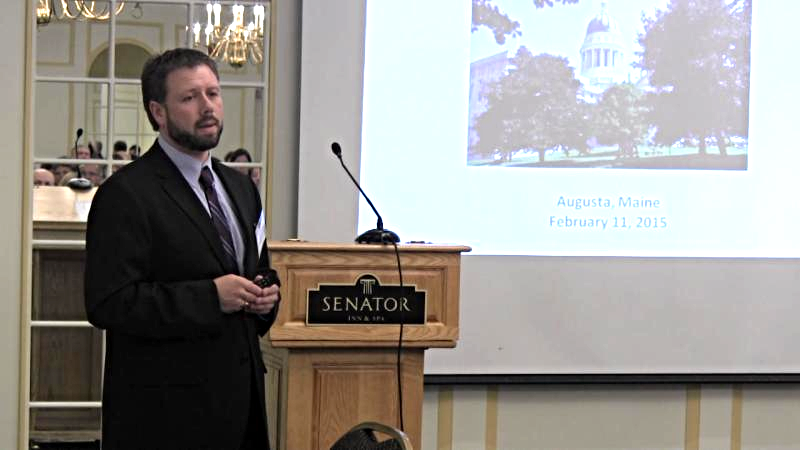 LEAD Executive Director Ryan Pelletier addresses attendees at the Aroostook Day at the Legislature dinner.