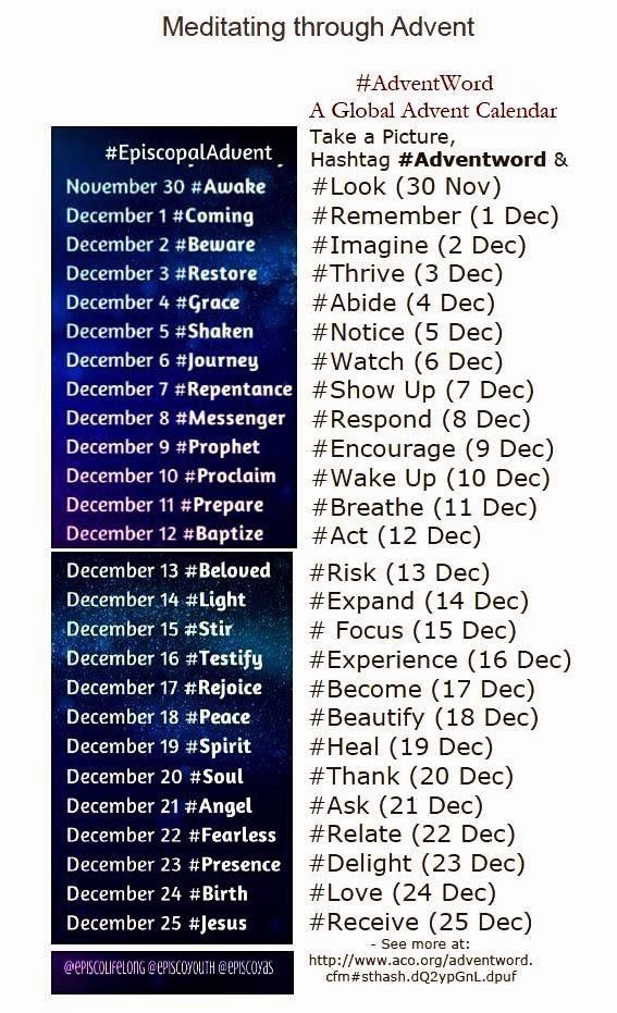 The Formation and Vocation Offices also invite Episcopalians to join in on a photo meditation throughout the Season of Advent. Each day they offer a reflection word taken from the Sunday Readings that is posted on their Social Media sites. An article on this Advent art project is found online here: Meditating Through Advent.