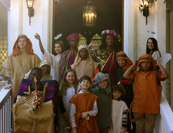 The cast of the Nativity for the Lessons and Carols liturgy at St. Andrew's and St. Cyprian's in Darien poses for a photo outside the church doors. An album of photos is online here: Lessons and Carols photos