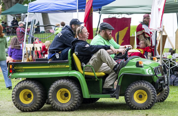 Security: Our festival is unique in that an assortment of weapons are allowed on-site for demos, re-enactments and traditional ceremonies. A young, new security staffer wasn't aware of this and asked his superior if they were allowed. At that moment a very large man passed by with a 6-foot sword strapped to his back. The Team Leader pointed at the man. "Go ahead, take it from him."