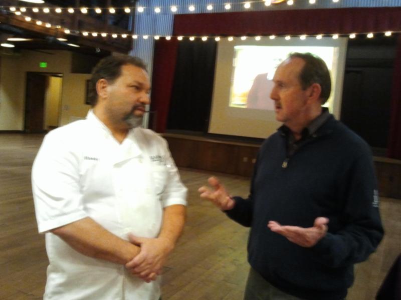 Event caterer Randy Ubry, left, and Randy Elder of the Blue Goose network during the Leads visit to the Boue Goose.