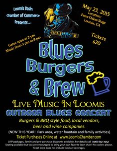 Join us for the second annual BLUES, BURGERS and BLUES festival Saturday, May 23, in beautiful downtown Loomis!