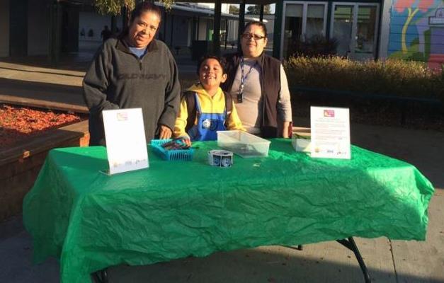 The family of three lives in Vallejo and drive to Lynwood for almost one hour, but still wants to be an active part of the Safe Routes to Schools program. "We park three or four blocks away and then walk," says Carmen, who emphasizes she thinks that exercise is beneficial for her son because it makes him more alert before class. Arriving half hour before school starts, the trio helps Safe Routes to School's bilingual coordinator, Monica Leifer, set up the welcome table to greet children who took a green way to school that morning. Sometimes, Andres, a second grader, even chases down the walkers to make sure they receive an incentive.