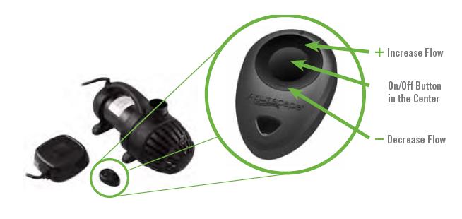 Most pondless waterfalls utilize an Aquasurge adjustable flow pump. With just the touch of a button the flow in the falls can be increased or decreased to suit any mood. Push the center button to turn the falls off, give it another push and the falls start flowing again. |