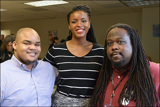 Javius Cain, a co-chair of BTAN Baltimore and a social worker at the Institute of Human Virology at the University of Maryland School of Medicine, Josephine Ayankoya, the mobilization coordinator for Black AIDS Institute and Jamal Hailey, co-chair of BTAN Baltimore and the director of programs for Special Teens At-Risk, Together Reaching Access, Care and Knowledge (STAR TRACK) at the PrEP training session for health care workers at the Department of Health and Mental Hygiene in Baltimore, Md. (Freddie Allen/BAI)
