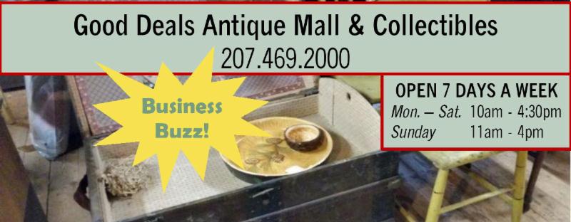 Good Deals Antique Mall & Collectibles is located at 98 Main Street in Bucksport. This unique Main Street business features antiques and collectibles, consignments, old and new items. Open 7 days a week April- September Monday - Saturday 10am - 4:30pm Sunday 11am - 4pm