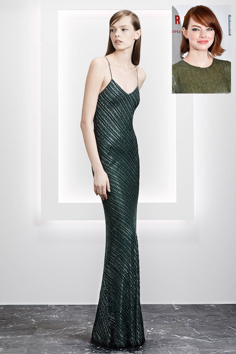 The top photo is Harper's Bazaar editor's choice for Emma Stone. She's nominated for a Golden Globe for best supporting actress in The Birdman, an impressive critical success but not so much with audiences. Too bad.