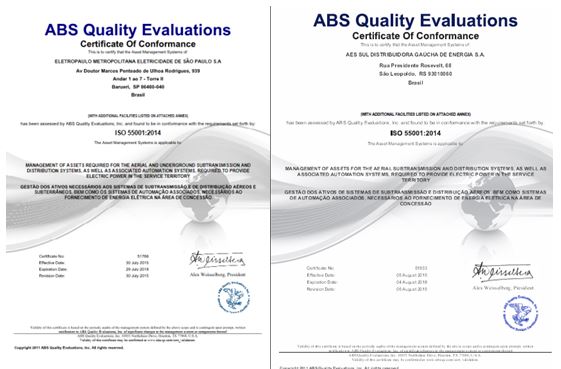 AES Eletropaulo and AES Sul obtain ISO 55001 certification in Asset Management