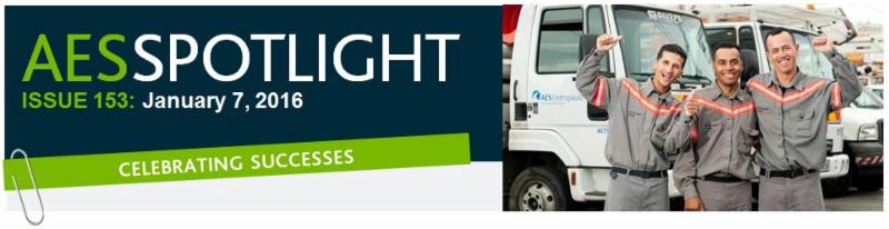 This month, we are celebrating successes across the company. In 2015, thanks to your commitment to improving lives, AES businesses received nearly 100 awards in key areas important to the company including great place to work rankings, sustainability, financial excellence, operational excellence and safety. Thanks for your work in 2015, and we look forward to continuing to deliver on our mission of improving lives in 2016.