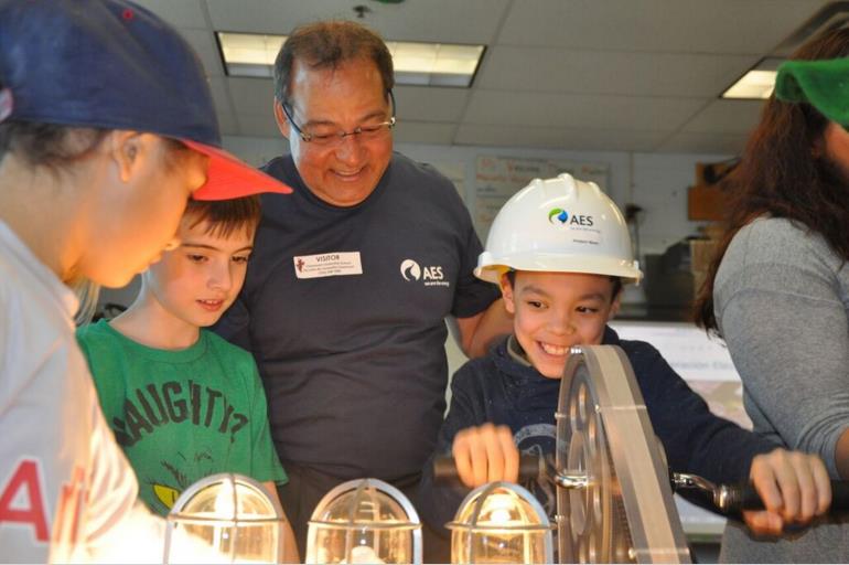 AES volunteers teach fourth graders from the local public schools in Arlington County about how electricity is generated, best safety practices and energy efficiency techniques. This yearly activity started last year after AES signed a partnership with the Arlington Public Schools. The classes are comprised of a theoretical part and a practical exercise where students have the opportunity to generate electricity with a hand-cranked device.