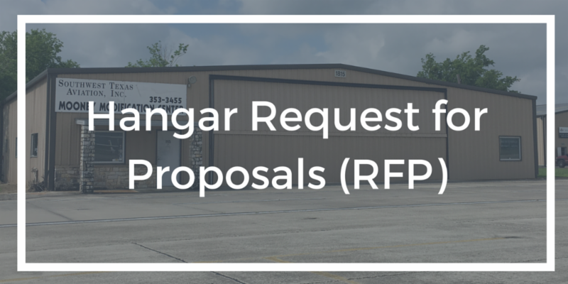 As mentioned in our April newsletter, in an effort to be as fair and transparent as possible, we're trying out a new process for box hangars that come available for lease. The first hangar to go through this Request for Proposals (RFP) process is located at 1815 Airport Drive and was previously occupied by Southwest Texas Aviation. The hangar must be used for commercial aviation purposes. The RFP document will be available for download on Sunday, May 22nd via the City's eProcurement website www.sanmarcostx.gov/eprocurement.