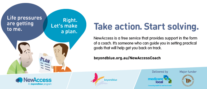 How do I know if someone is just sad and will get over it, or depressed and should get help? Isn't worrying or being anxious just part of life? Along with the free New Access service, BeyondBlue staff are offering to come to your group or staff meeting and talk about these questions, as well as discuss the latest research on how to take action on depression or anxiety. We cover how to recognise the early signs and symptoms, why taking action early is important, and some things to do if you, or someone you know, might need support. Consider inviting the New Access service to your next meeting for 15 minutes up to an hour, whatever suits your schedule. Contact them on 1300 137 934 today!