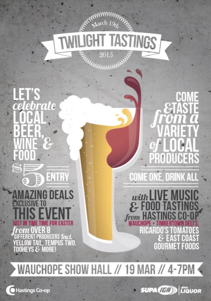 19 Mar: Twilight Tastings Beer and Wine Expo- Hastings Coop invite all to attend this fabulous new event at the Wauchope Showground from 4-7pm. Supporting local wineries and brewers in a rustic atmosphere. Click here to view the poster.