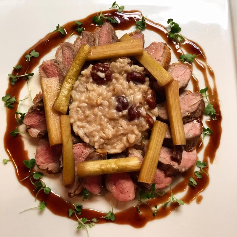 | | Local Duck Breast, Liver-Cherry Risotto, Rhubarb |