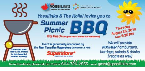 Yossilinks and The Kollel Summer BBQ - Save the DateThursday August 25