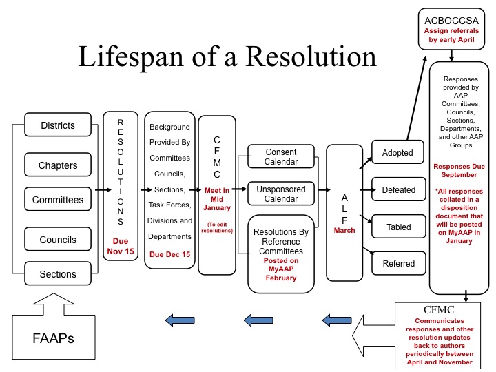If you are passionate about a particular idea or topic that you feel should be a priority for the National AAP, then please consider submitting a resolution. Please see the "Guidelines for Submitting Resolutions, Writing and Submitting a Resolution - A Step by Step Guide", and the latest resolution template accessible via links below to get you started. These resources are also available on the ALF main page accessible via the My AAP website, where you will also find a searchable database of past resolutions. Resolutions should have new ideas not previously considered or discussed at Annual Leadership Forum (ALF).